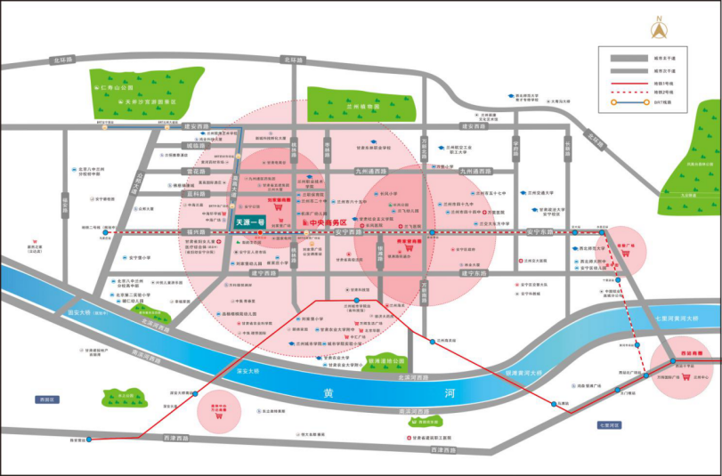 項目周邊蘭州市二十中、蘭州市六十五中、甘肅省婦幼安寧分院、甘肅科技館、北環(huán)路、BRT等環(huán)繞安寧區(qū)成熟生活片區(qū),人口密度在安寧區(qū)內相對較高,周邊生活配套設施較完善,周邊教育、醫(yī)療、交通和商業(yè)等配套設施一應俱全。